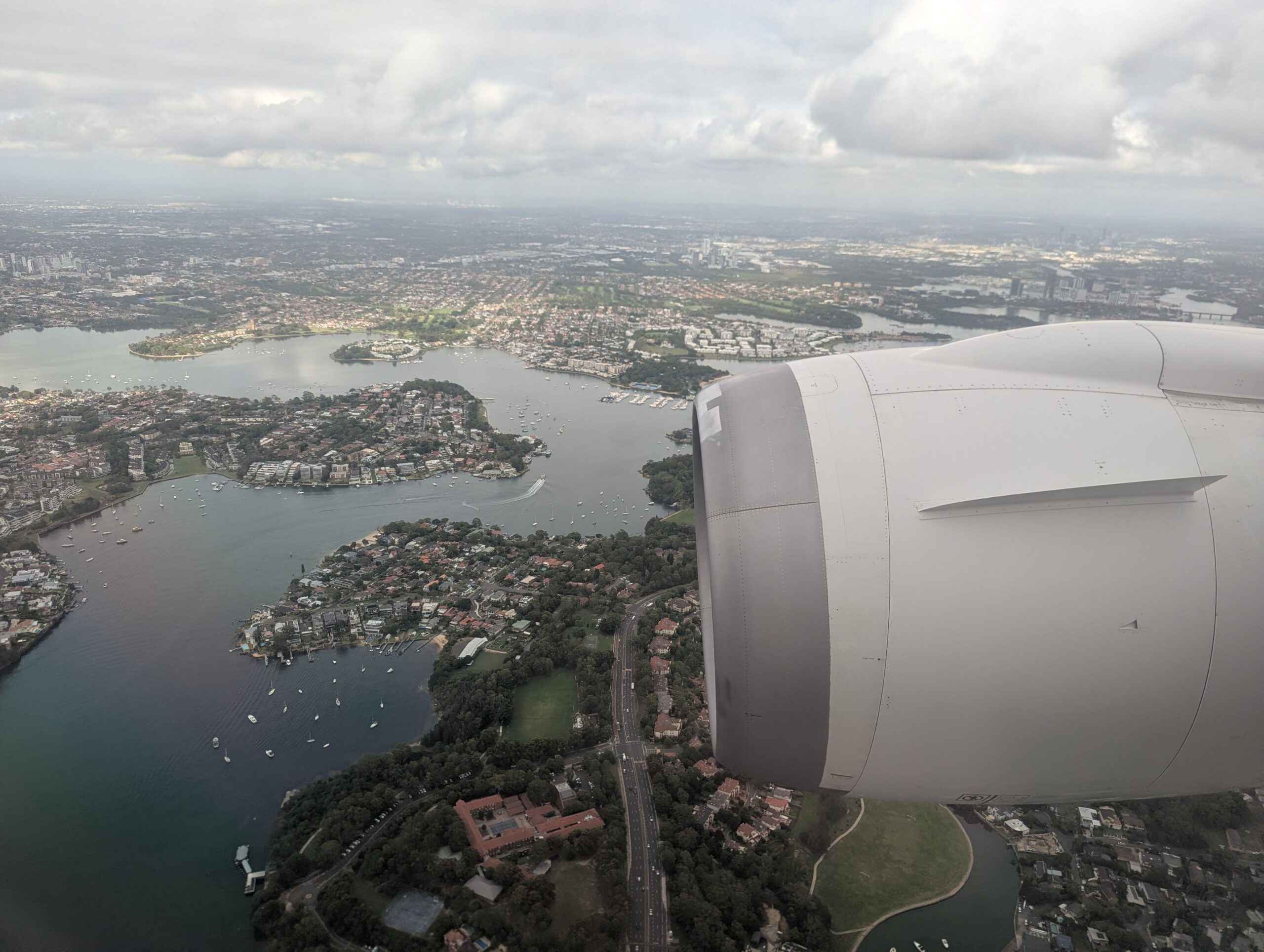 I feel the speed brakes being deployed as we begin our descent above the Hunter Region and into Sydney. The “mostly clear day” update given by the captain appears to be incorrect as we pass through a couple of cloud layers.